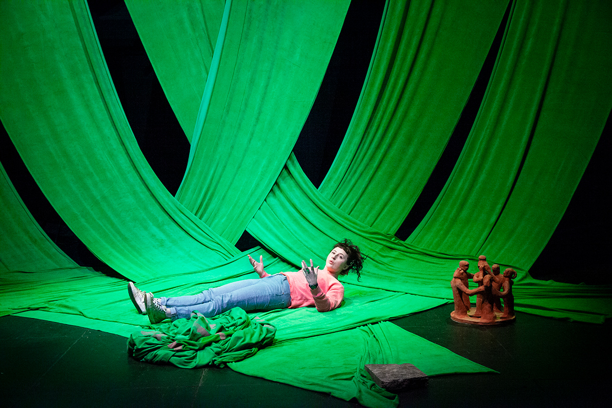 Après en être partie pour le cosmos (GENESIS) ou l’océan (THE ABYSS), présenté au Grütli dans la saison 18-19, le cœur de PALM PARK RUINS c’est de REVENIR à la terre, pour l’habiter. Interroger donc le retour cyclique aux jardins, la reprise en main de nos moyens de subsistance et plus globalement s’intéresser aux urgences ou désirs qui façonnent l’habitat, au sens riche du terme : au sens de se faire une vie.