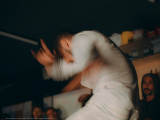 Il propose une expérience et une performance avec la technique de la danse aérienne qui fait partie de sa recherche de mouvement pour le processus de création arrebentaçao – zona de derrama last chapter.